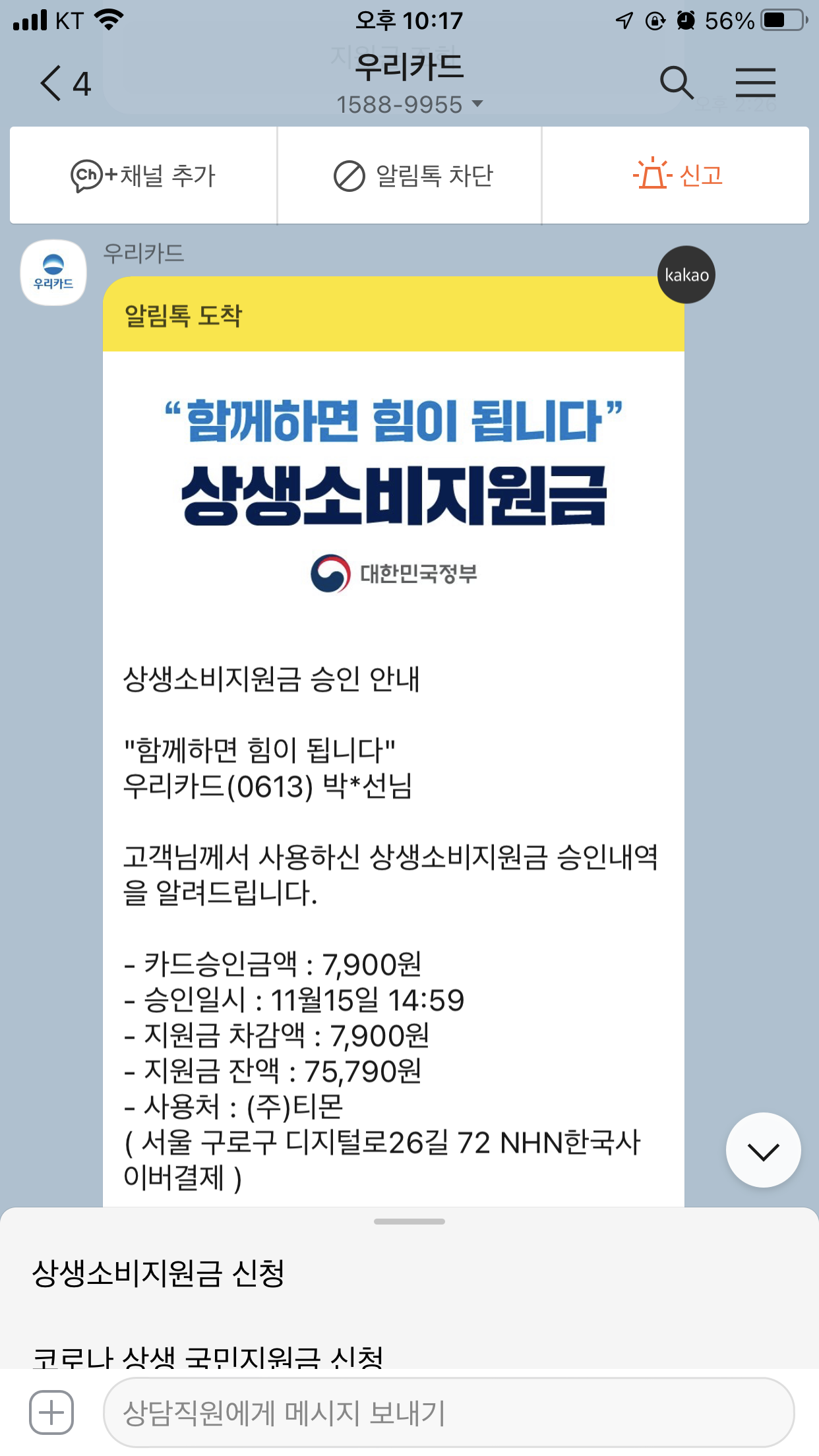 10월 1일부터 신청을 받고 있는 이 제도, 아직 . 신용카드나 체크카드를 2분기 월평균 사용액보다 3% 이상 많 많이 . 오늘부터 10월분 신용카드 캐시백, 상생소비지원금이 지급됩니다. 상생소비지원금 10월분 캐시백 15일 지급 1인당 평균 4만 8000원…169만명 '10만원' 지급된 캐시백은 사용처 제한없이 사용 가능 네이버·카카오 '실적 . 코로나 상생소비지원금은 10월, 11월 두 달 동안 내가 쓴 만큼, 카드 캐시백을 받을 수 있는 환급제도에요.